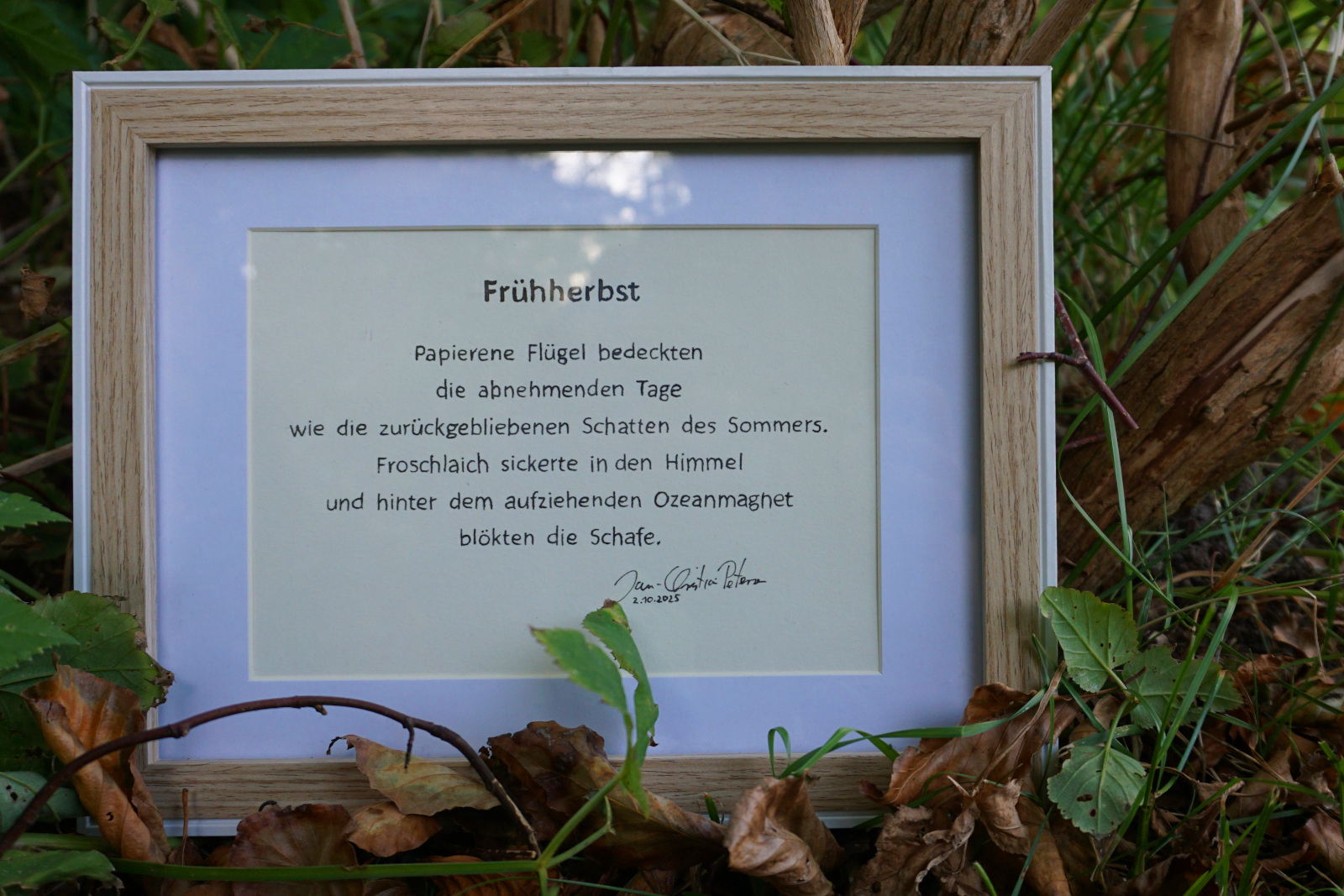 Mai 2025 | Mein Prosagedicht „Der Mühlenweiher“ entstand während einer dreitägigen Künstlerresidenz „Artist in Nature“ von Bunnies Ranch e.V. in Flensburg. Das Werk besteht aus neun verdichteten Beobachtungen, die ich rund um den Weiher angebracht und vorgetragen hatte. Hier hören Sie das vollständige Gedicht auf YouTube.